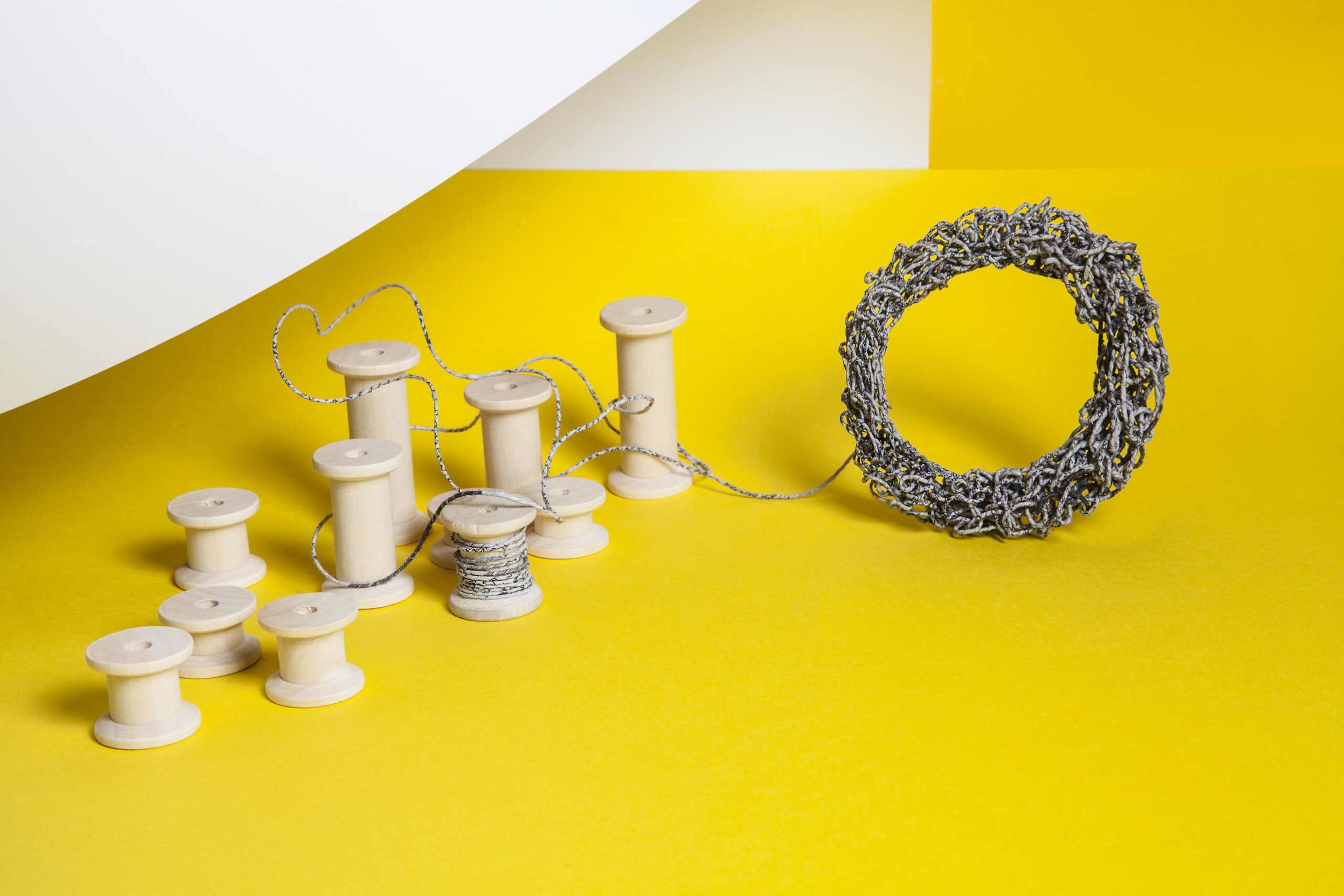 “Ho capito che stavo percorrendo una strada senza via d’uscita, rimanere senza una occupazione socialmente riconosciuta incide, oltre che sulle proprie risorse economiche, anche sulla propria identità, ma mi riconosco la forza di essere tornata alle origini per rivederle in chiave lavorativa“. Punto di svolta di questo percorso è stato l’incontro con l’artista Ivano Vitali, performer, scultore, ecologista che trasforma i giornali in arte crochet, in una mix di arte, etica, ecosostenibilità. Marcella prima ha costruito un fuso rudimentale, “poi mio papà è riuscito a trovare un fuso antico del 1800 e con l’aiuto di un falegname siamo riusciti a elaborare uno strumento in grado di filare la carta, che poi ho brevettato“.