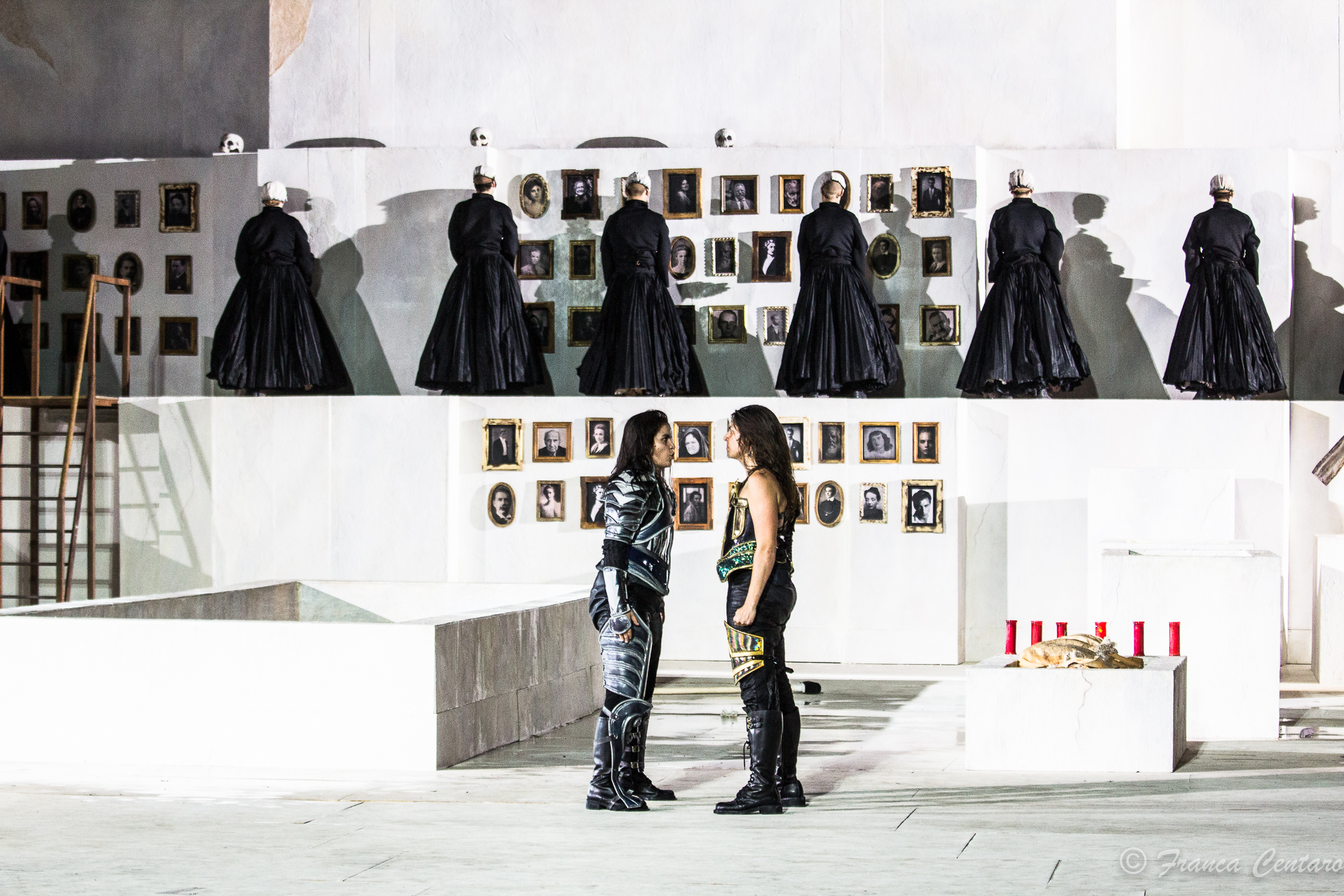 «Penso a un gioco teatrale con regole nuove – aggiunge la Dante – mi allontano dall’antichità, delle forme canoniche e invito un cast al femminile di ricoprire tutti i ruoli senza distinzione di genere, così come i greci giocavano a interpretare le donne in scena. Penso a una comunità androgina, dove il potere viene fatto a pezzi e sostituito dal candore dell’infanzia, dalla purezza. Penso al rapporto tra la donna e il mito in cui stavolta è la donna a misurarsi con la leggenda»