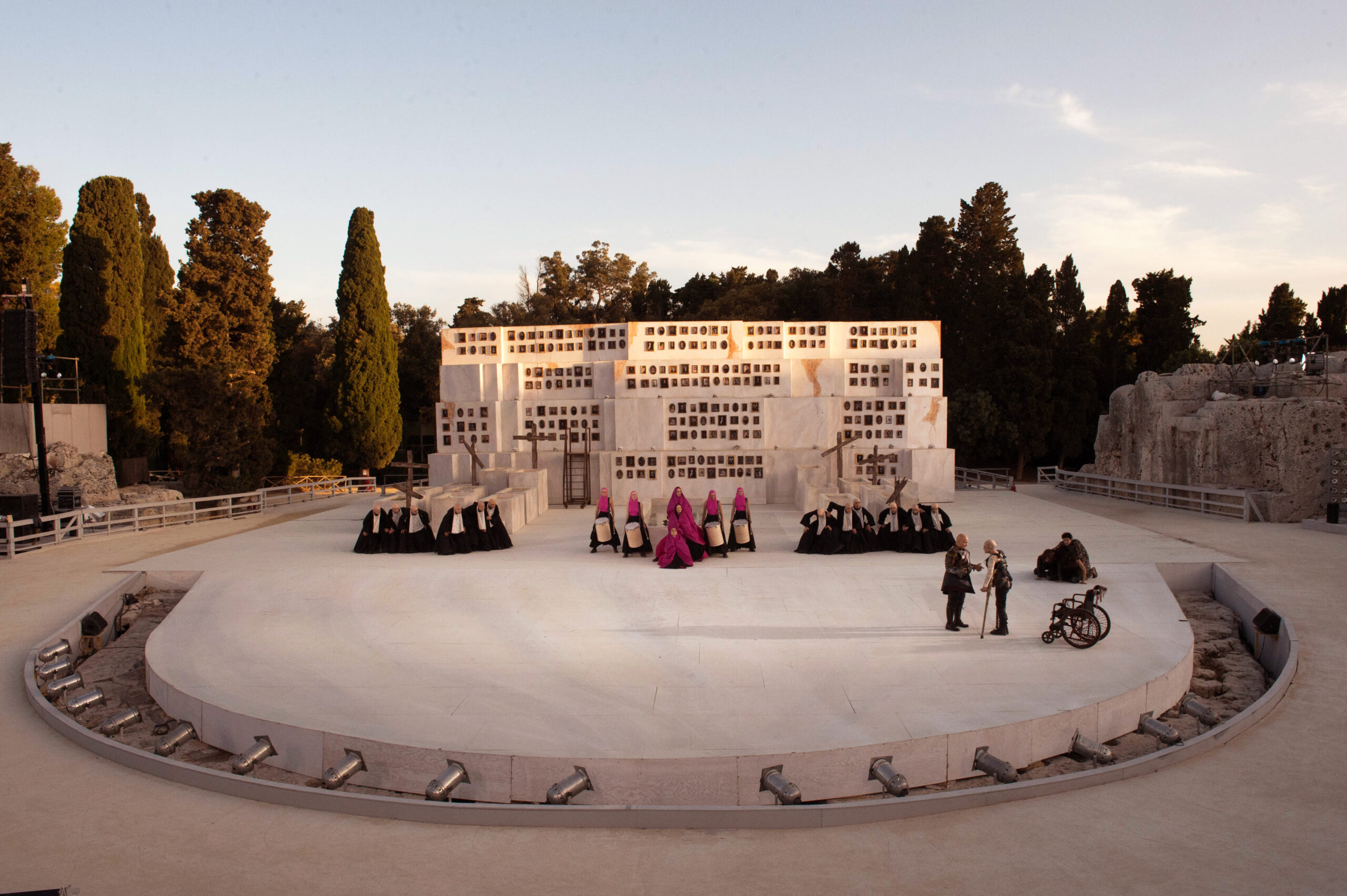 Mi è tornata in mente la mia professoressa di latino e greco, quando ho letto dell’Eracle di Euripide, in scena fino al prossimo 23 giugno, per la regia di Emma Dante. La rappresentazione della tragedia fa parte del 54° ciclo di rappresentazioni classiche in programma al Teatro greco di Siracusa, allestito dalla Fondazione INDA (Istituto Nazionale del Dramma Antico) non è come tutte le altre. È una rivisitazione con un cast al femminile, in cui la regista mette in evidenza la fragilità umana, non necessariamente rappresentata da un corpo virile, rovesciando così tutti i canoni del teatro greco antico che vedevano i ruoli femminili interpretati da uomini: «Cosa succede se una femmina incarna l’eroe, rappresentando la sua potenza e la sua fragilità con l’armonia nei fianchi e la durezza nello sguardo? – afferma la regista – Cosa succede se il maschio-eroe del mito diventa bianco e lieve come una nuvola? In Eracle mi interessa la fragilità, perché non è la forza né il potere a renderlo virile. È la sua anima e il suo coraggio a fare di lui un essere umano, non certo i suoi muscoli».