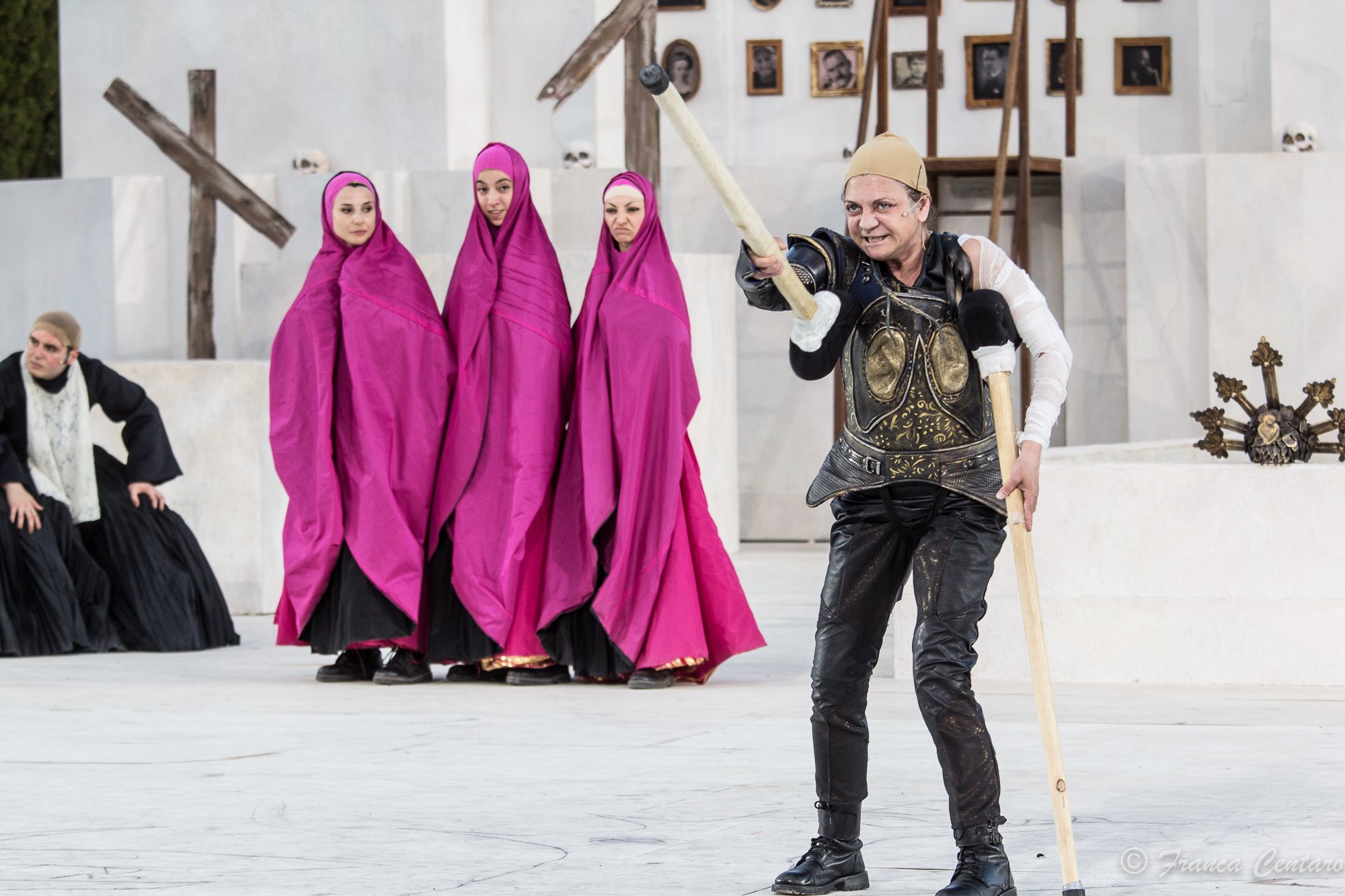 Da semidio a individuo fragile, inerme, soggetto alle passioni e agli istinti più biechi. «Il senso della tragedia è proprio questo – spiega Andrea Di Gregorio, traduttore – l’ineluttabilità del destino, la volontà degli dei, cui nessuno può sottrarsi. Neanche uno come Eracle che alla fine compie un misfatto tremendo, sebbene ingannato dalle messaggere di Era, da un lato involontariamente, ma dall’altro contemporaneamente consapevole. Dal punto di vista del teatro e della rappresentazione, in fondo, non conta il sesso, bensì la condizione umana che in Euripide possiede una contemporaneità quasi sconcertante. I protagonisti sono sempre persone onorevoli, oneste, nobili, apprezzate e con una buona considerazione, come del resto lo era proprio lo stesso Eracle. E quante volte abbiamo sentito dire il classico commento “Ah, era per una persona per bene”in riferimento a casi di cronaca molto simili a questi narrati? Ciò fa sembrare tutto ancora più atroce e attuale».