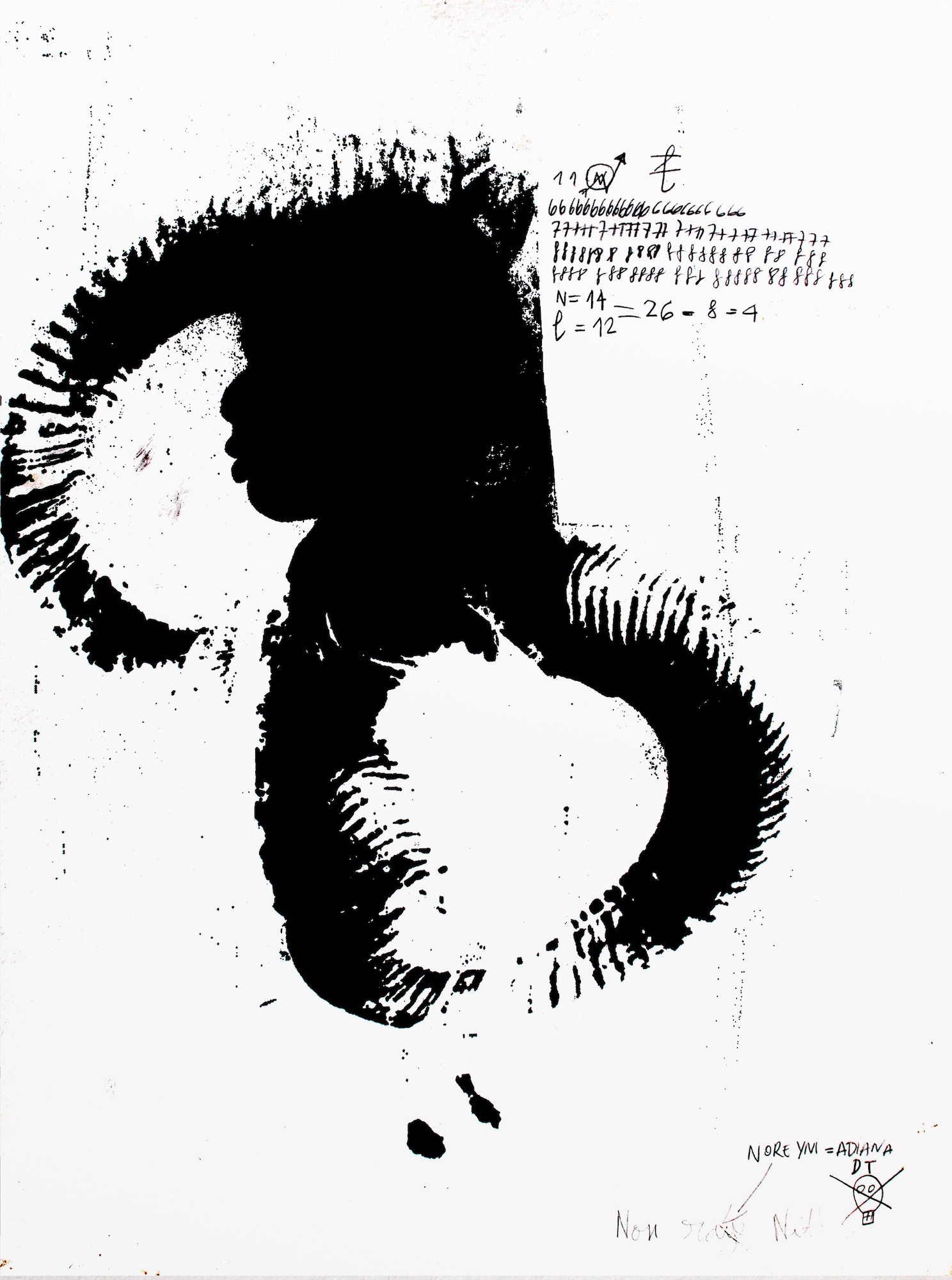 Durante il successivo periodo di studio a Braunschweig, in Germania, Diana inizia a svolgere ricerche più approfondite sulla cultura del padre: «In Nigeria sono stata soltanto una volta da bambina con i miei genitori. Di conseguenza, finché non mi sono decisa a intraprendere degli studi in merito, tutto ciò che sapevo a riguardo lo avevo assimilato attraverso le storie di migrazione, i racconti di mio padre o semplicemente per intuizione. Quel mondo mi appariva lontanissimo, sebbene sia sempre stato presente nella mia vita. A Braunschweig ho iniziato a lavorare con lo Nsibidi, un sistema di ideogrammi nigeriani tradizionalmente usati da sciamani e vietati alle donne. Così il mio stile ha cominciato a prendere forma e con il passare del tempo ho sviluppato simboli sempre più miei, in particolare legati alla natura e alla femminilità».