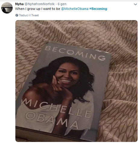 “Becoming” è il libro dei record del 2018. La biografia di Michelle Obamaha superato a metà dicembre scorso i 3 milioni di copie negli Stati Uniti e per natale è stato il best seller in Gran Bretagna, con 92mila copie vendute solo in una settimana. E anche l’Italia non è stata immune dal fascino della ex first lady, una ragazza “normale” cresciuta nella periferia di Chicago che ha sempre avuto grandi ambizioni e coraggio.E così i social media si sono riempiti di fotografie con il libro che sta diventando un must e non solo per le donne.