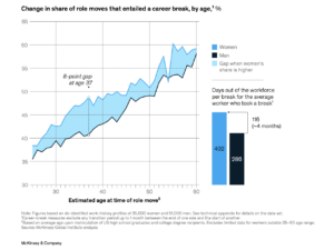 Secondo McKinsey, le donne prendono il 42% di giorni in più di pausa lavorativa rispetto agli uomini. Le interruzioni di carriera sono spesso più lunghe, soprattutto nei periodi legati alla maternità, e questo comporta un rientro più difficile e, in molti casi, penalizzante in termini di retribuzione e di prospettive. Intorno ai 37 anni, età media della genitorialità, il gap nei break di carriera raggiunge il picco, con una differenza di otto punti percentuali a sfavore delle donne. Il cosiddetto “mom penalty” colpisce duramente: le donne che diventano madri spesso vedono rallentare o addirittura bloccarsi la propria progressione di carriera, un effetto che si trascina anche sul lungo periodo.