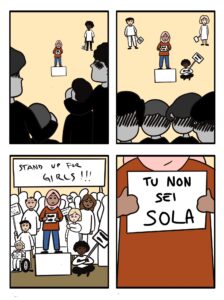 Libertà e autodeterminazione, evocate in tutti gli speech, sono un diritto non ancora e non sempre garantito per le ragazze. Intanto, per sentirsi libere e sicure, le ragazze hanno imparato a fare squadra: lo ha sottolineato l’attrice e attivista Valentina Melis nel suo intervento, scegliendo proprio “Sorellanza” come parola chiave e comune alle storie di donne citate che hanno indirizzato la sua vita. La stessa che canta Giulia Mei nella sua “Bandiera”: la canzone “inno”, che ha chiuso l’evento, ha accompagnato nell’ultimo anno manifestazioni di piazza, in università, per le strade delle città. «Libera, voglio essere libera» cantano le ragazze mentre lasciano esplodere la rabbia per un’altra coetanea ammazzata.