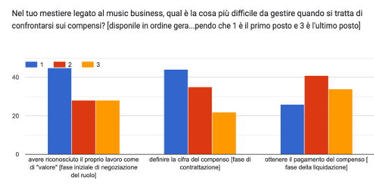 Come registra lo studio, il 61% delle intervistate ritiene di essere pagata meno degli uomini. Solo una minoranza non percepisce un divario di compenso. Il resto del campione spiega il fenomeno in termini di reputazione, per cui la credibilità professionale di una donna in ambito musicale è meno riconosciuta e si costruisce più lentamente, e competenza, per cui la giustificazione a un compenso inferiore viene ricondotta a una minore competenza tecnica o artistica a dispetto dei percorsi formativi strutturati posseduti dalle donne.