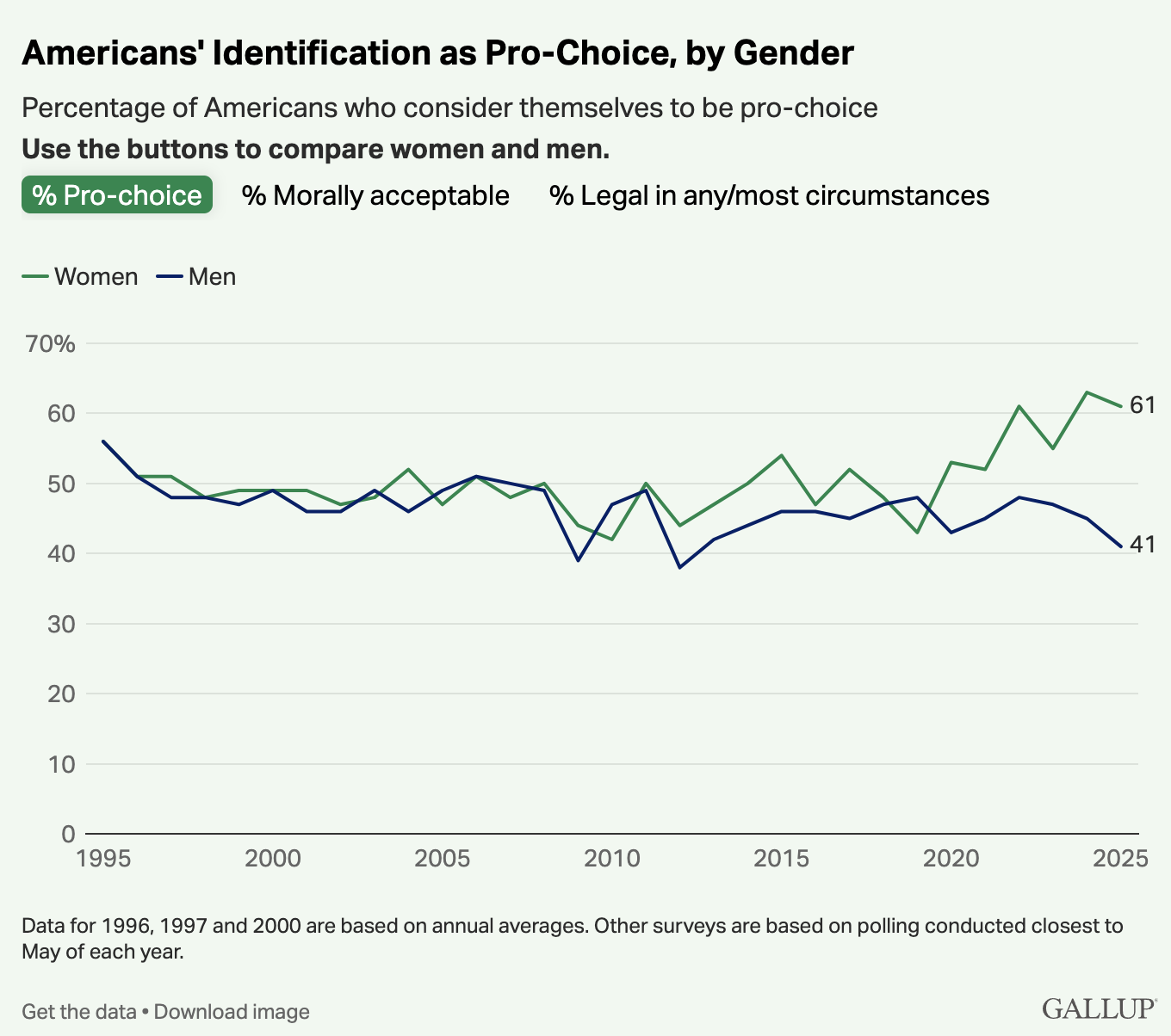Tutto considerato, comunque, lo studio di Gallup mostra una linea crescente, in tema di supporto alla libertà di scelta. Se, infatti, negli ultimi tempi è aumentata e si è consolidata la quota di quelle che esprimo posizioni a favore della legalità dell’aborto, dall’altra, il supporto da parte degli uomini è, sì, calato. Ma si è spostato solo marginalmente. Inoltre, anche guardando alle posizioni politiche dei rispondenti, a prescindere dal loro genere, il sostegno risulta aumentato.
