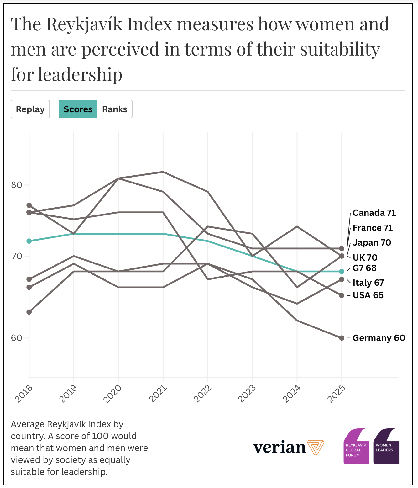 La fiducia nella leadership femminile nei Paesi del G7, Reykjavik Index, 2025