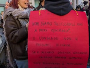 «Senza consenso è stupro». A trent’anni dalla legge sulla violenza sessuale in Italia, associazioni femministe e centri antiviolenza tornano in piazza con mobilitazioni territoriali diffuse in tutto il Paese, in vista della manifestazione nazionale del 28 febbraio. Il 15 febbraio, data simbolica dell’entrata in vigore della riforma del 1996 (e per altro compleanno di questa testata), le piazze ribadiscono un principio che – denunciano le promotrici – nella riformulazione del disegno di legge voluta dalla senatrice Giulia Bongiorno è stato eliminato, discostandosi da quanto previsto dalla Convenzione di Istanbul, il trattato internazionale per la prevenzione e il contrasto della violenza contro le donne che parla esplicitamente di consenso.