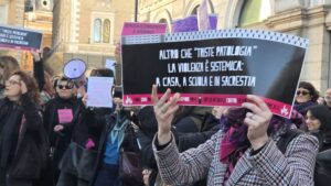 A Roma la mobilitazione si è concentrata nel centro storico, con un presidio e un corteo che hanno attraversato alcune delle vie più frequentate della città. Piazza Santi Apostoli è stata il punto di ritrovo delle attiviste, delle operatrici dei centri antiviolenza e delle associazioni femministe. Da lì è partito il corteo che ha percorso via del Corso fino a culminare a piazza del Popolo, portando al centro dello spazio pubblico lo slogan «senza consenso è stupro».