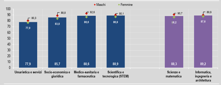 In Italia, l’ultimo rapporto Istat sul tema è stato pubblicato a fine 2025 e si riferisce ai dati del 2024. Il report conferma una sotto rappresentazione delle donne nel mondo Stem: nel 2024, poco meno di un quarto dei 30-34enni è laureato in queste materie, una quota che sfiora il 37% tra gli uomini ma che si assesta solo al 15% per le donne.